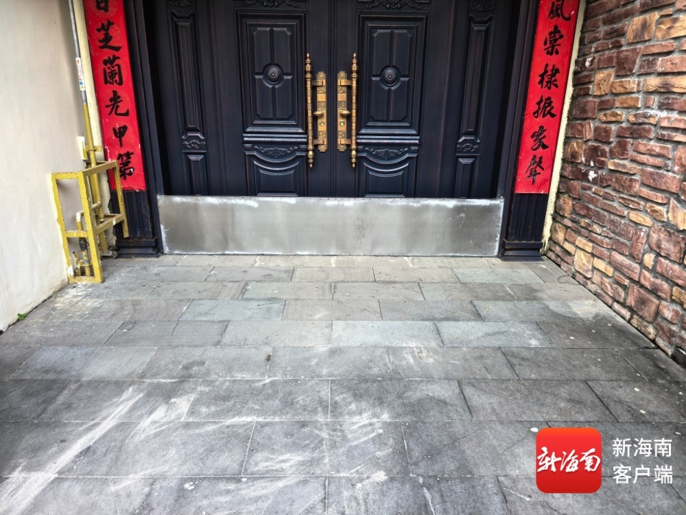 当天,记者来到业主吴先生家门口,还未进门就看到别墅入口建起一道高约70厘米左右的石板。“这是防止下雨积水流入屋内设置的。”吴先生介绍,他是2019年入住该小区,原本小区并没有出现积水情况。最近这两年,入住的业主开始增多,小区周边又新建多个小区,然后就开始出现积水的情况。“小区内有一条市政排水管道穿过,随着住户的增多,原有的管道不够用了,所以一出现强降雨,就发生积水入户的情况。”