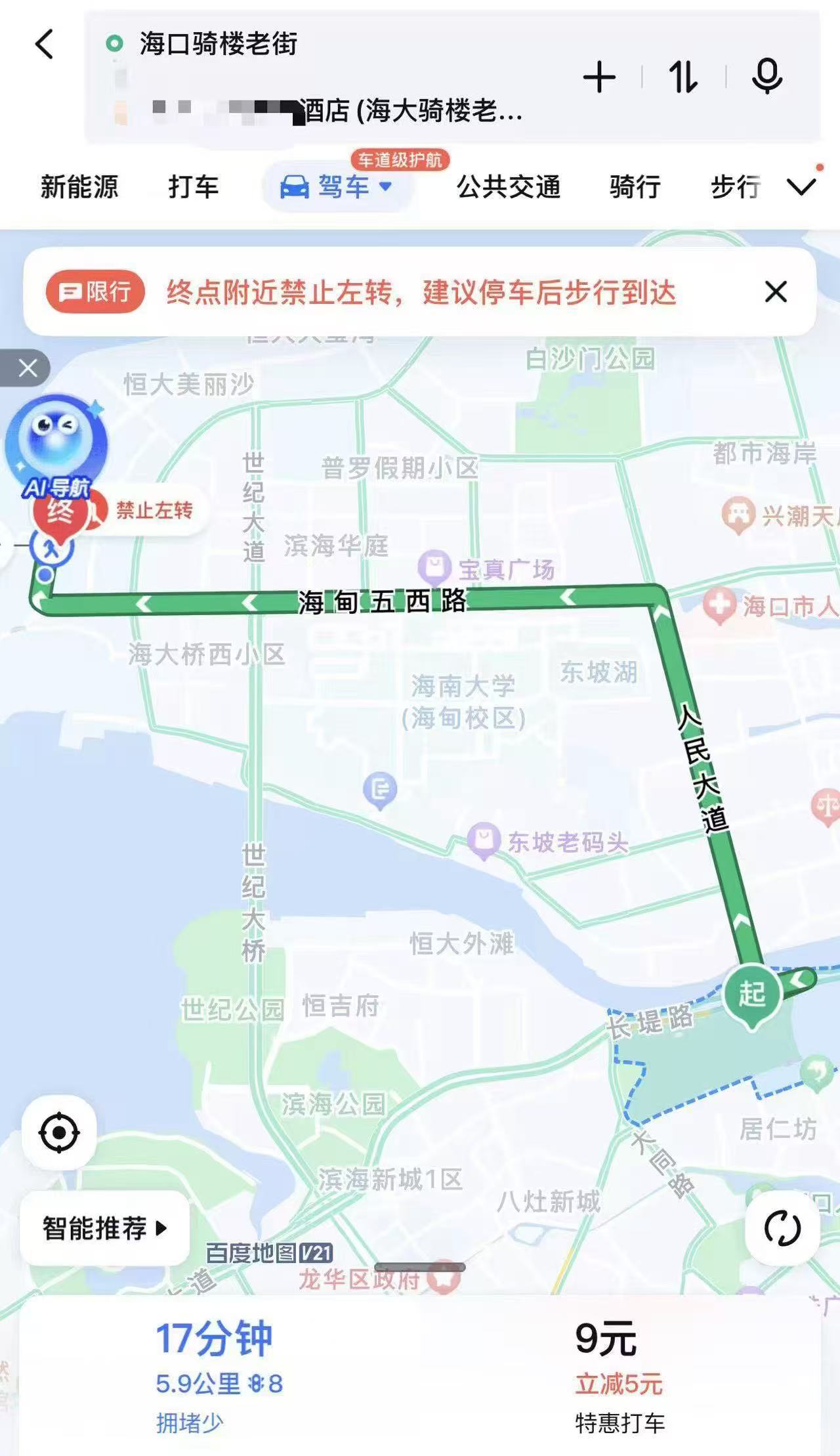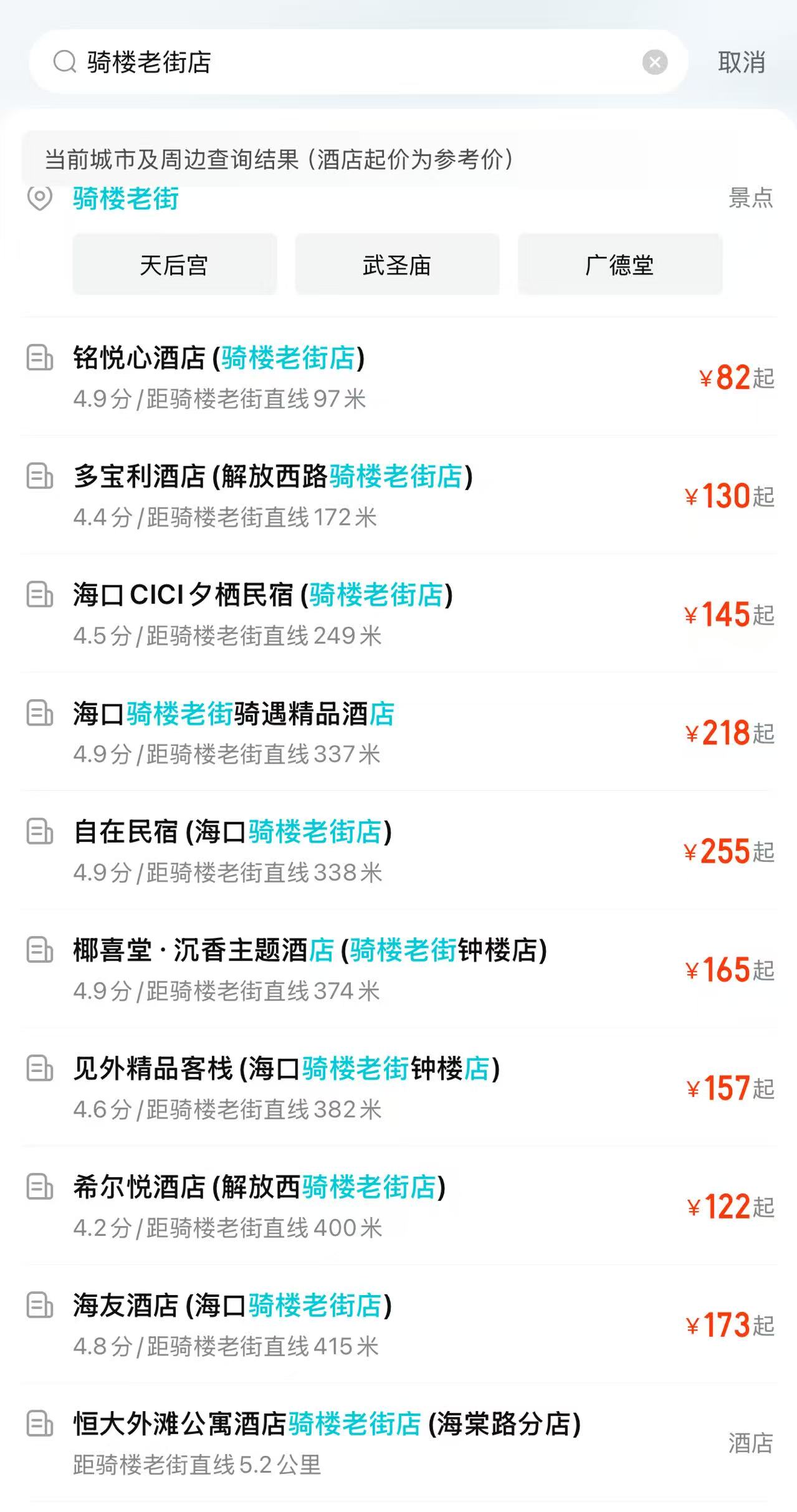 “我以为酒店名称中标注了骑楼老街,至少应该在骑楼老街周边呢,没想到距离骑楼数公里开外,打车过去要近20分钟,走路需要近2小时。”近期,外地游客孙先生向记者反映,称春节期间其围绕海口骑楼老街搜索酒店住宿时,一家名为“XX城市民宿酒店(海大骑楼老街店)”的酒店曾一度因房型、价格等方式优势映入其眼帘。但其随后仔细比对发现,该酒店位于海甸岛美丽沙路,百度地图显示其距离骑楼老街超过5公里,从酒店乘车到骑楼老街需要17分钟,而步行甚至需要1小时50分钟左右,其立刻放弃了预订的想法。“这个名称太有误导性了,如果当时不小心订到这酒店,不仅每天出行安排要调整,出行费用也要另算,整体的旅游体验感也会变差。”孙先生说道。