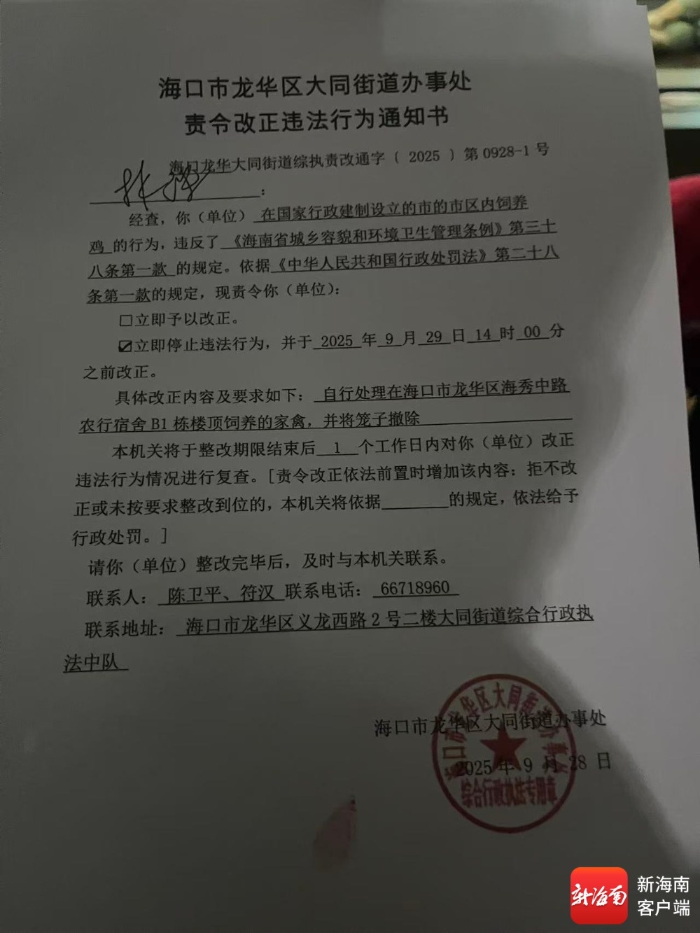 问政海南 | 海口一宿舍楼顶变“菜园鸡舍”引不满 执法部门回应→