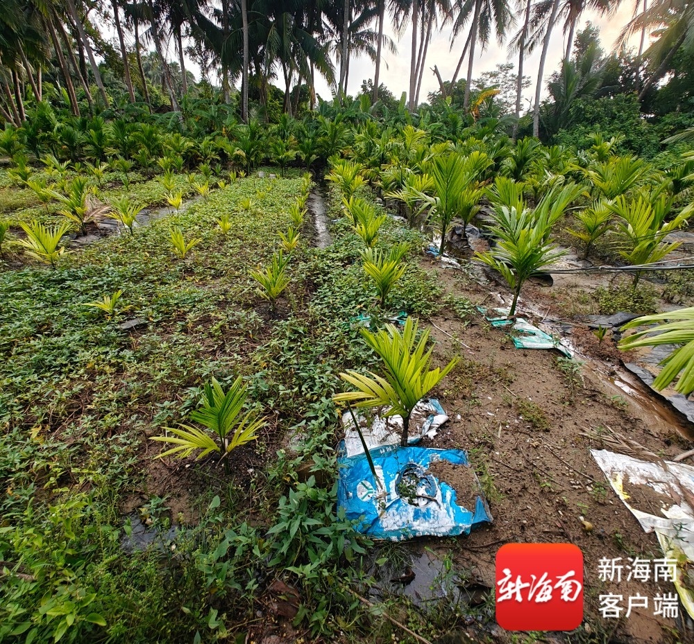 村民吴先生种植的地瓜、槟榔苗被海水浸泡后叶片发黄。记者 姜飞 摄