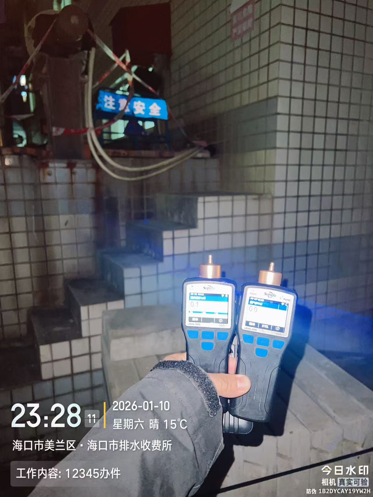 1月10日晚至1月11日凌晨,记者跟随水务部门工作人员来到海甸污水提升泵站。该泵站比邻海口市排水收费所,主体位于居民区旁,外观可见老旧痕迹,现场可闻到微弱酸味,但并未感受到明显恶臭。工作人员手持仪器,在泵站厂界多个点位进行实时监测。