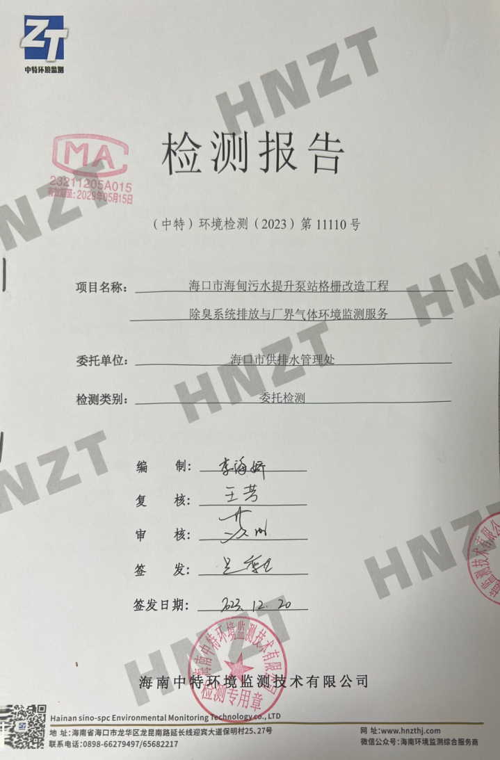 监测情况(硫化氢与氨气)。海口市水务供水污水技术中心提供